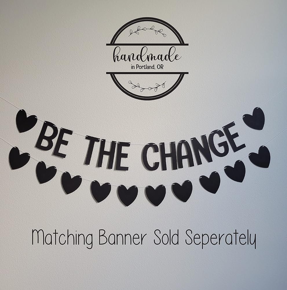 Prepare to be delighted, you are going to love this black heart garland. The matching banner that reads "BE THE CHANGE" is sold separately.