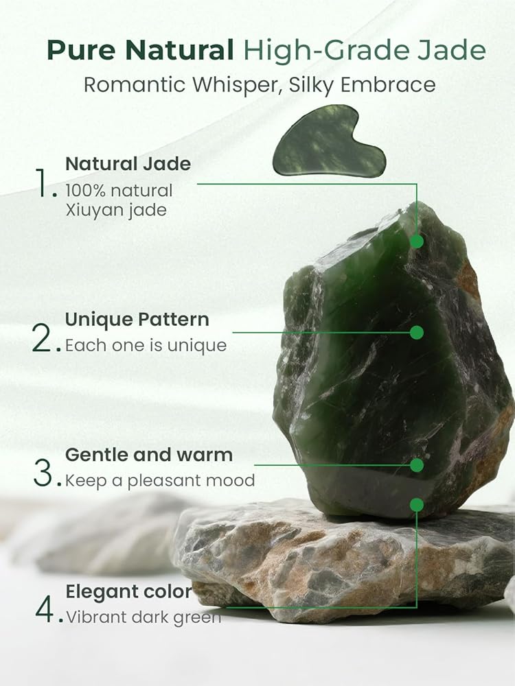 • Natural Material: Gua sha scraping massage tool made by 100% natural jade stone, which is beneficial minerals to skin beauty and body health; Long lasting, super easy to care