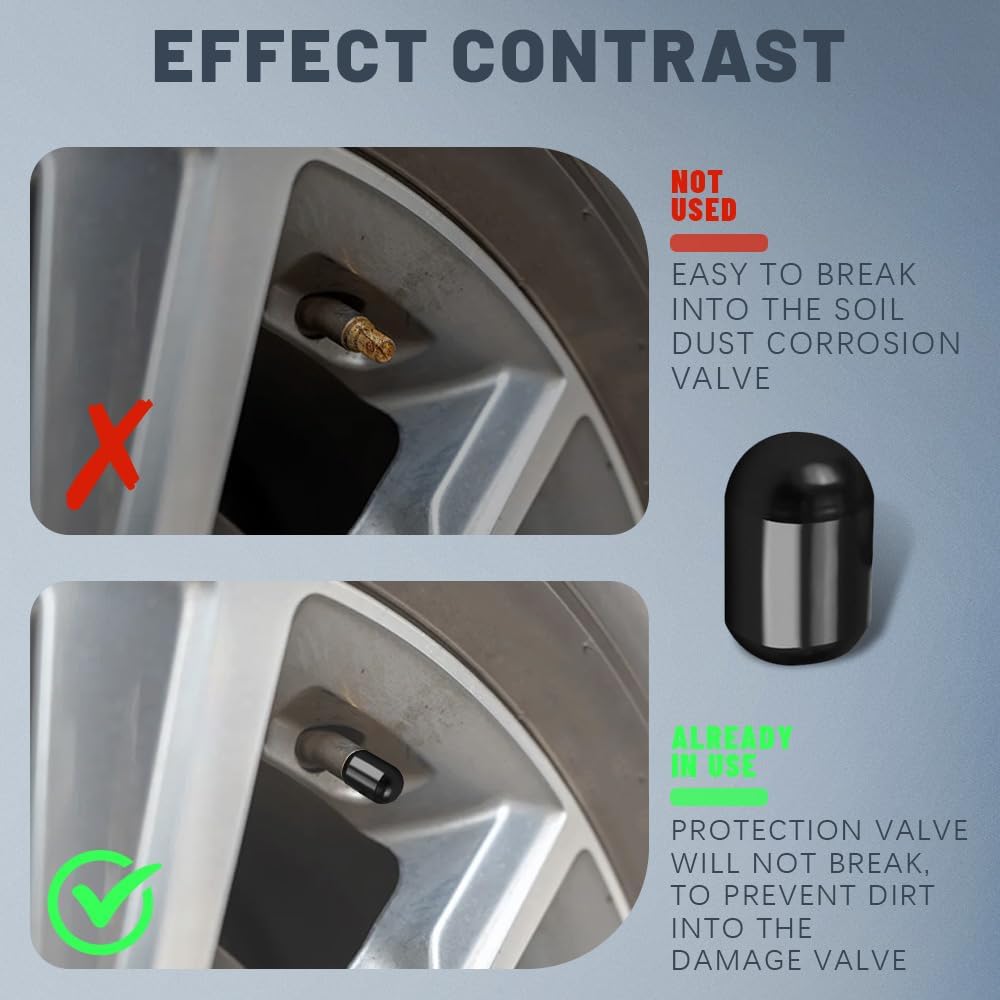 [Important functions]: These air caps for tires can well protect the automobile tire valve, can effectively avoid dust, rain, gravel and sand into the tire, to avoid the valve blockage or air leakage problem, help the automobile tire to maintain a good condition, driving more smooth and comfortable