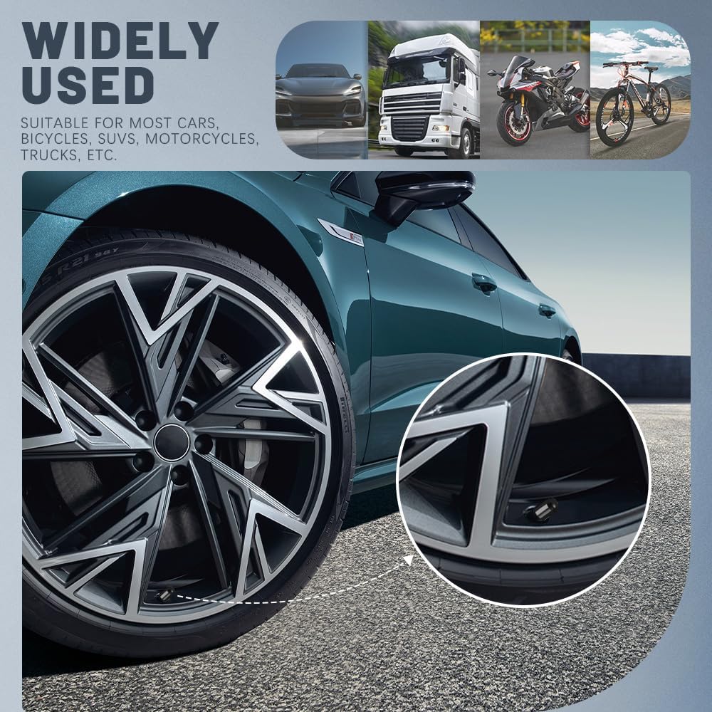 [Wide application]: These valve stem caps for cars can be applied to most cars, trucks, off-road vehicles, motorcycles and bicycles. You will receive four pieces of these tire stem caps, enough for daily installation use, which can be installed on each of the four tires of the car