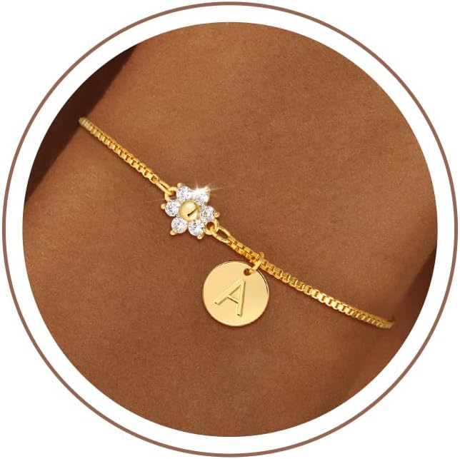 Initial Bracelet Material: Initial bracelets trendy is high quality chain and delicate letters and flowers decoration, simple and exquisite. Made of 14K gold plated to ensure a long without faded, hypoallergenic, no harm to your skin, suitable for all-day wear