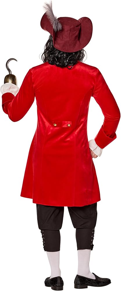 Team up with the Lost Boys on your way to Neverland this Halloween in this officially licensed Captain Hook costume. This outfit has everything you need to look just like the iconic character, including his signature red pirate overcoat, hat, and hook accessories. The hunt for Peter Pan begins once you put on this Captain Hook costume!