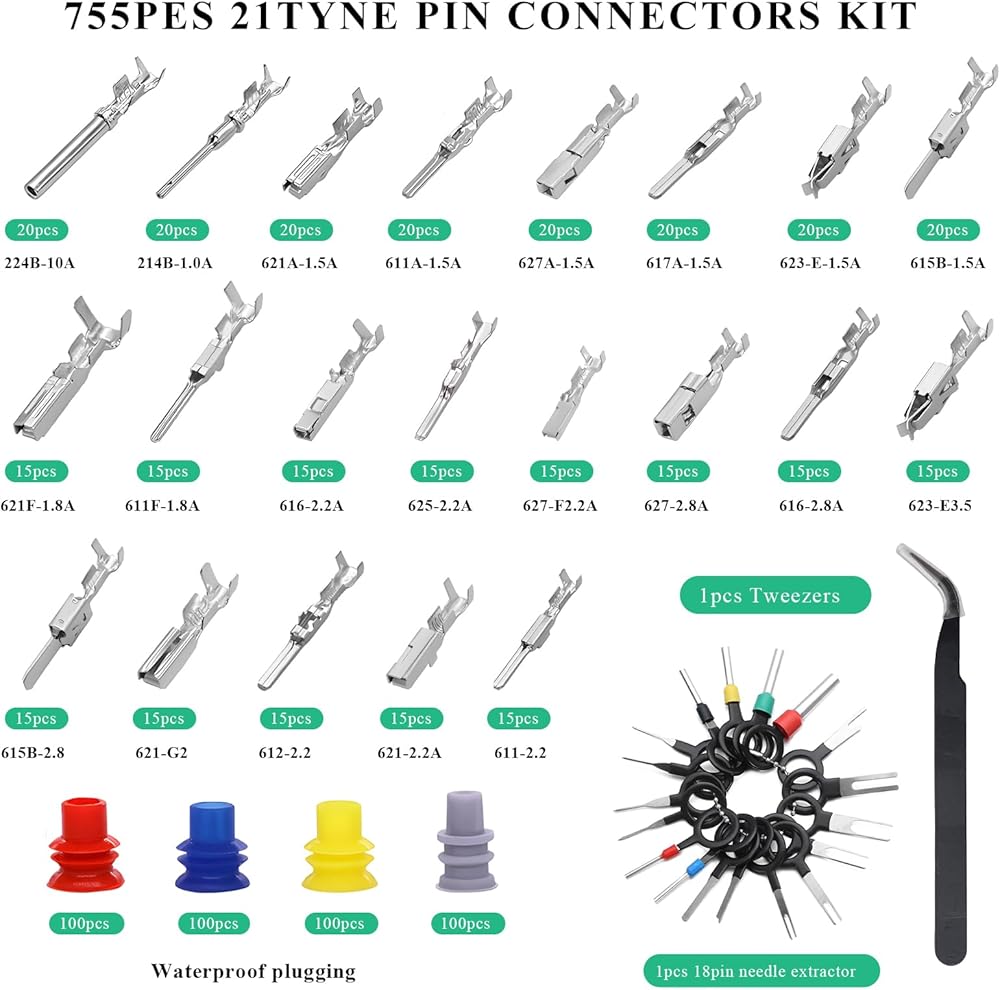 Package Includes: 355 Pin Connectors, 400 Plugs, 18 Pin Needle Extractors, 1 Tweezer, 1 Storage Box