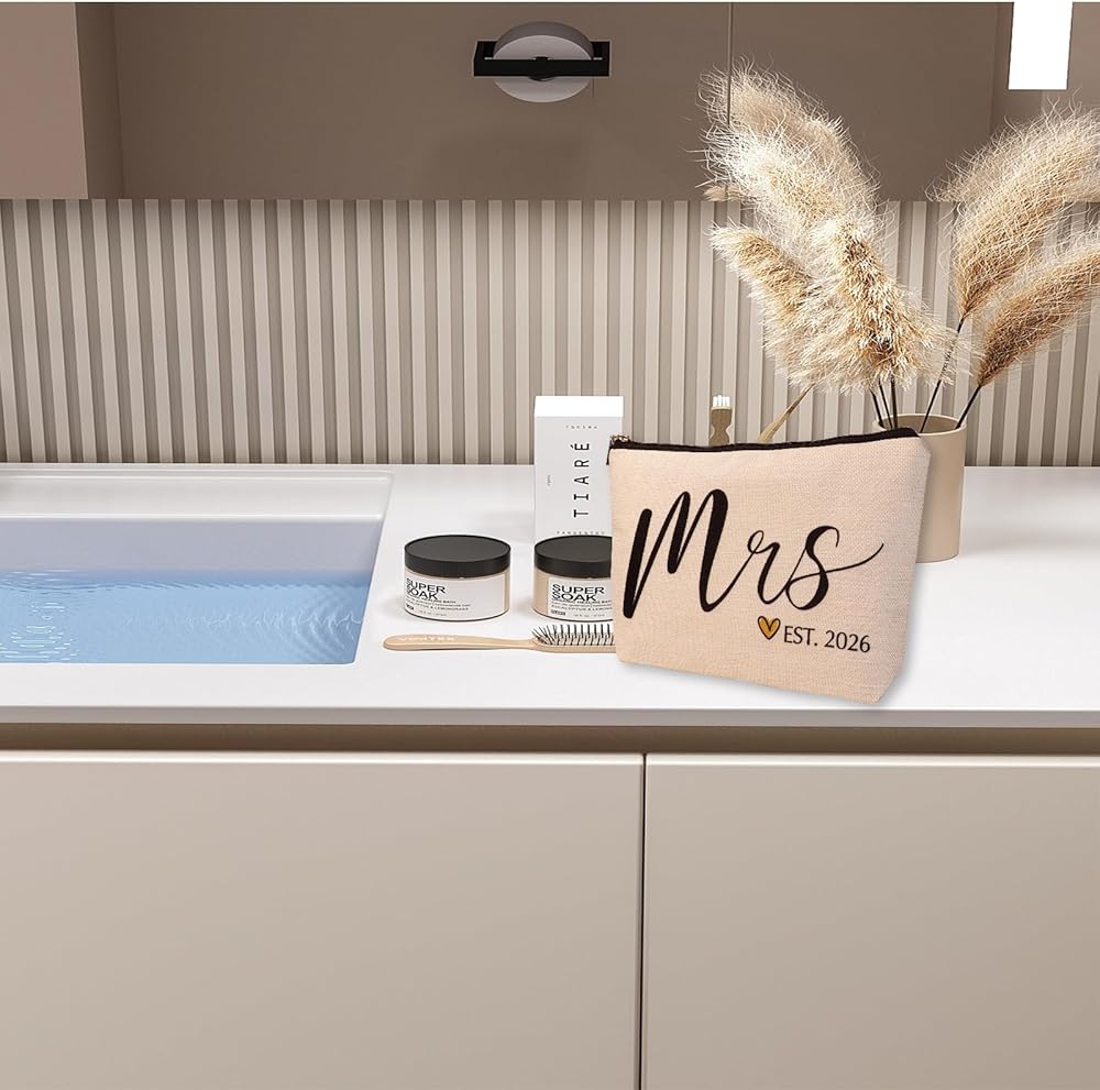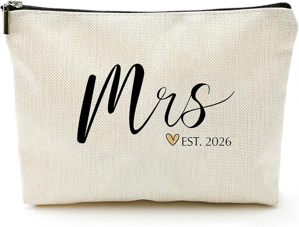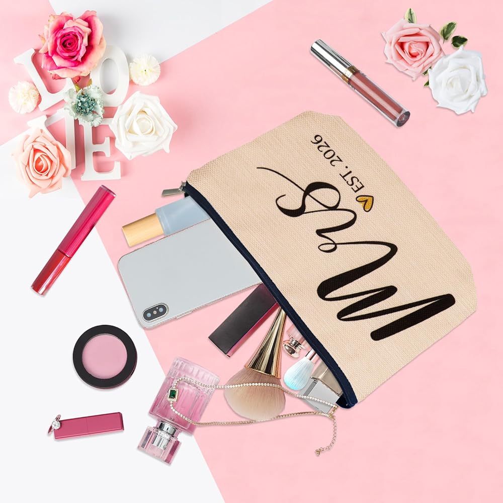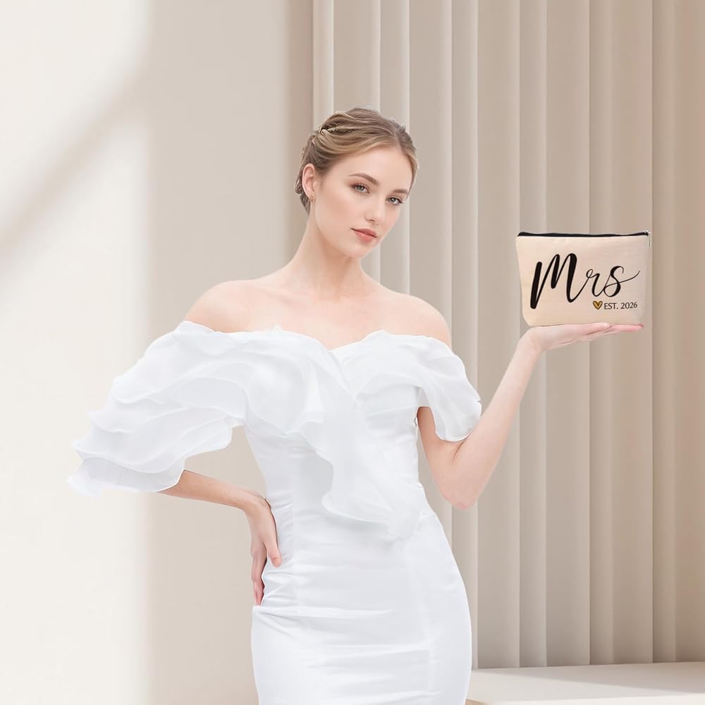 This ancpeany Wedding Bridal Shower Gifts for Bride To Be 2025 Makeup Bag is the perfect gift for any bride-to-be. Whether you're shopping for a future Mrs., a bachelorette party, or a bridal shower, this cosmetic pouch is sure to be a hit. Made with high-quality materials, it is both durable and stylish. Not only is this makeup bag functional, but it is also versatile. It can be used as a travel pouch, organizer, or even a bride gift bag. With its compact design and lightweight construction, it's easy to carry with you wherever you go. Inside, you'll find plenty of space to store all your cosmetics and beauty essentials. From mascara and lip balm to eyeliners and nail polish, this bag has room for it all. The secure zipper closure ensures that nothing falls out, keeping your items safe and organized. With its elegant and charming design, these bachelorette bags are standout. They are the perfect bride bachelorette accessories for any future mrs or miss to mrs. Whether you're looking for a bridal shower gift, bachelorette party favor, or just want to treat yourself, this makeup bag is a great choice. Perfect for love is in bloom bridal shower decorations and wedding shower gifts, this makeup bag can also double as personalized bridal shower gifts. It's an ideal addition to any collection of bridal accessories and bridal shower game. Whether you're looking for wedding items or wedding welcome bags, this versatile and stylish mrs bag is a must-have. For the special bride in your life, this makeup bag is a wonderful engagement gift bag. It's also a fantastic bachelorette gift bag option. Whether you need bride accessories for bachelorette party, bridal shower card for bride to be or are looking for gifts for bride to be, this small makeup bag is a perfect choice. Declare your love and support for the bride with this special gift. It's a thoughtful and special present that will bring a smile to the face of any bride-to-be. Give it to your sister, daughter, best friend, or any other special woman in your life.