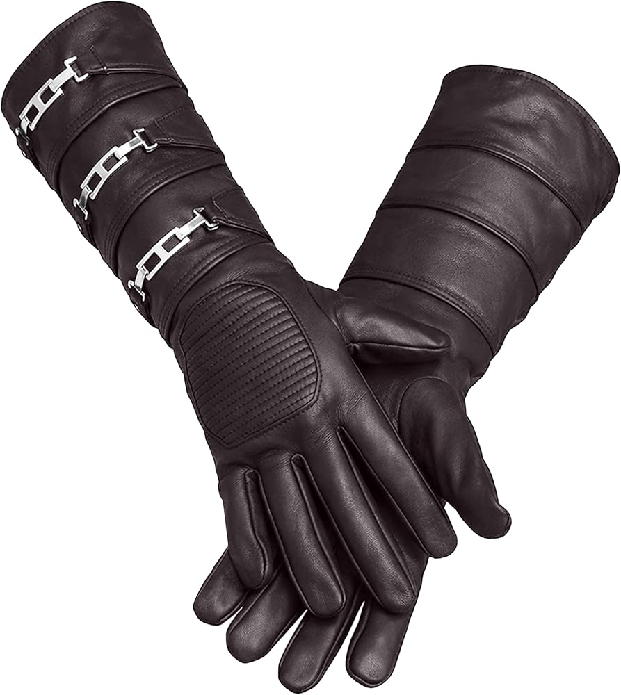 Sheepskin Leather: These Brown glove are crafted from Premium men sheepskin leather, offering a soft and luxurious feel, perfect for a high-quality cosplay experience.