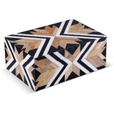 Handmade Mondrian Resin Inlay Storage Box – Modern Design with Practical Elegance Handicrafts Home presents the Marquet Array Collection, handcrafted with Pine MDF (Base) and Resin Inlay Detailing, showcasing a bold black & white geometric pattern. Built on a durable foundation, this artisan box brings modern flair and smart home storage to any room. Expert Craftsmanship – Each box is handmade by skilled Indian artisans, featuring detailed marquetry inlay with rich wood tones and contrasting white resin. The sturdy Pine MDF (Base) ensures strength, durability, and long-lasting beauty. A standout wooden box with lid that reflects true heritage craftsmanship. Functional Storage – Use this elegant decorative box to store jewellery, small keepsakes, trinkets, or everyday essentials like keys and remote controls. Also ideal as a photo storage box, wedding keepsake box, or wooden gift box. Storage That Elevates Your Space – Whether placed on a nightstand, console, or bookshelf, this piece adds a chic accent while keeping your space clutter-free. Perfect for boho kitchen decor, vintage decor, western accents, or Pinterest-worthy interiors. Available in 3 Convenient Sizes – Choose the perfect fit for your storage needs. This listing features the 8x5x2 inch size—ideal for organizing jewellery, trinkets, or small keepsakes while adding a stylish accent to any surface. Also available in 10x4.5x2.5 inches and 10x6x2.5 inches, perfect for creating a cohesive look through versatile stacking or standalone display in your home decor. Dimensions of Each Size OUTER SIZE (inches): 10 x 4.5 x 2.5 8 x 5 x 2 10 x 6 x 2.5