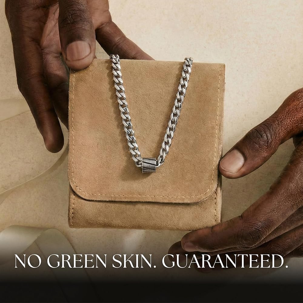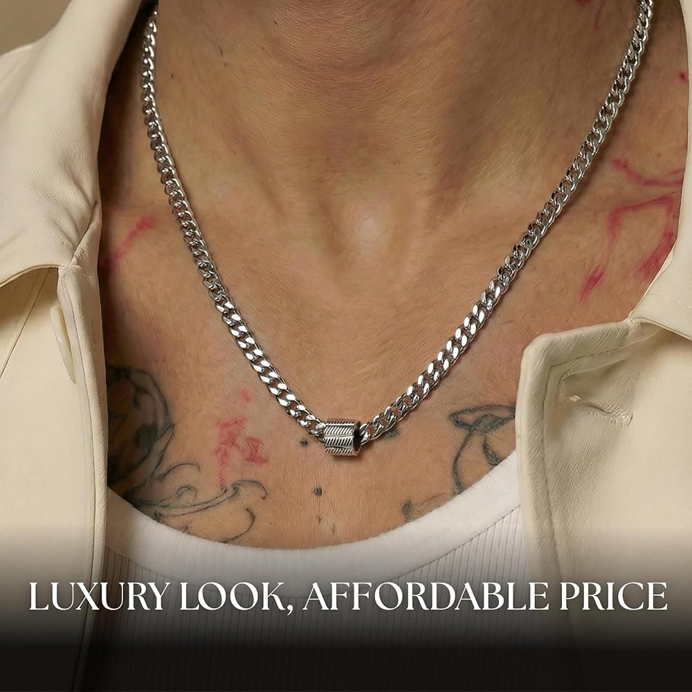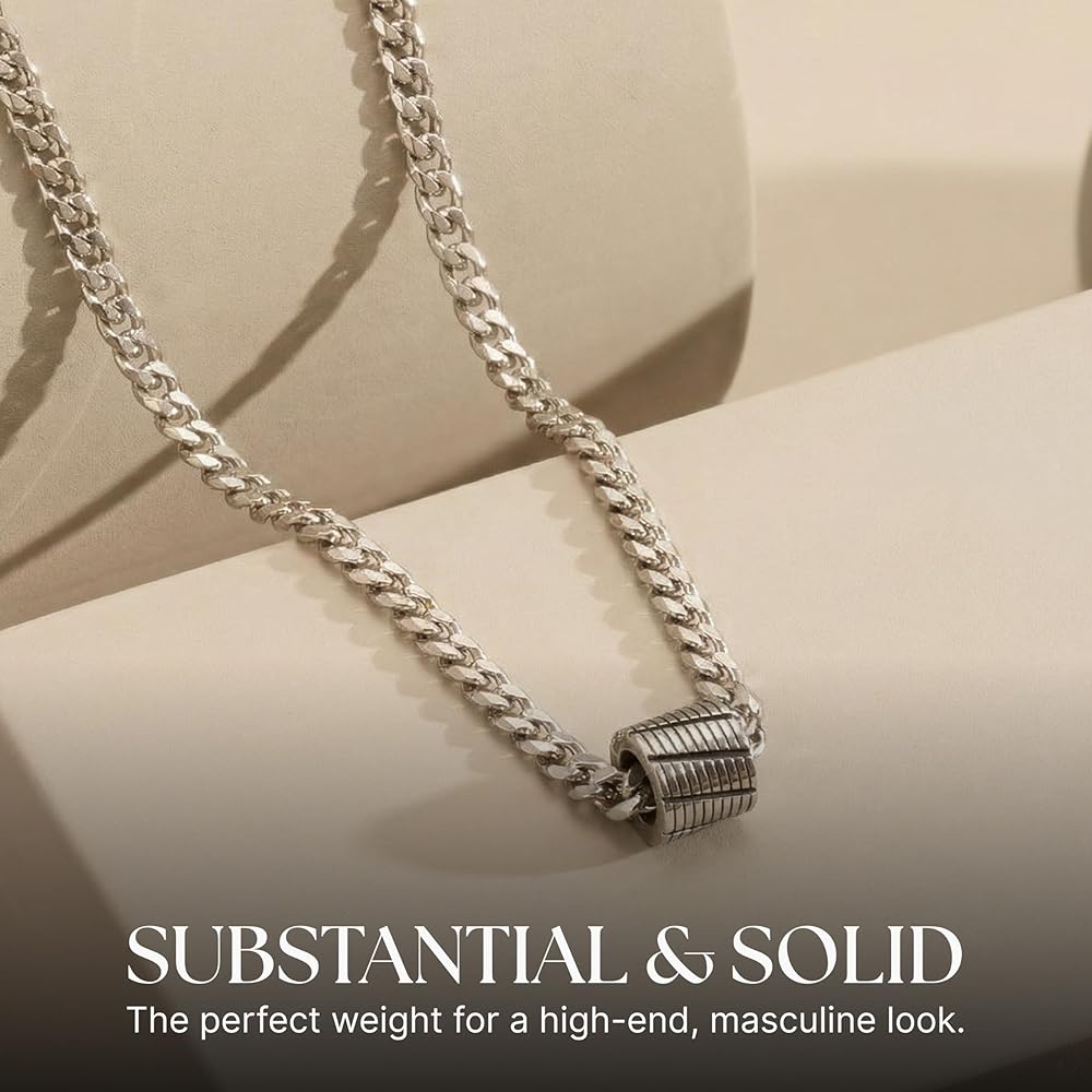 Galis Classic Chains For Men - Cuban Link Chain with Small Bead Pendant, Diamond-Cut Stainless Steel, Waterproof Silver Plated Men's Necklace, Gold Plated Necklace, Mens Gifts Ideas, 19.5"
