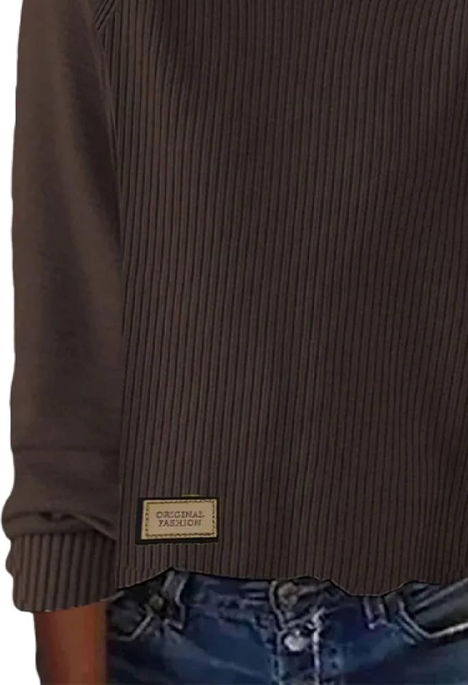 Features: Crewneck sweater, ribbed knit sweater for women, brown solid jumper, going out tops, womens sweaters features with long sleeve and subtle hem label, loose fit pullover sweaters, casual style with a chic look