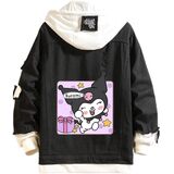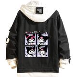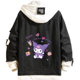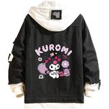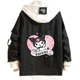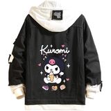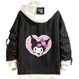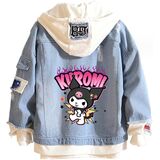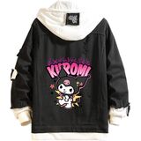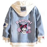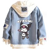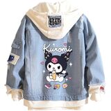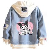 Design: Kawaii jean trucker jacket is inspired by Japanese cartoon characters. Feactures with lapel collar, single breasted buttons closure, drawstring hood, fake two-piece design. All design make this distressed denim jacket more normal, fashion and classic.