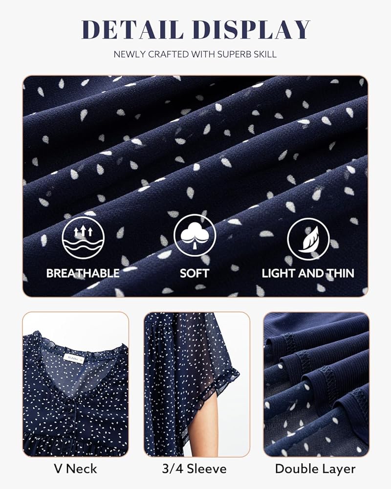 Match: This 3/4 sleeve blouse with pleated front design and flowy hem. Pairs perfectly with jeans skirts or leggings. Tucking in or wear loose to create different styles. Suitable for both casual and fashionable looks ideal for mixing and matching