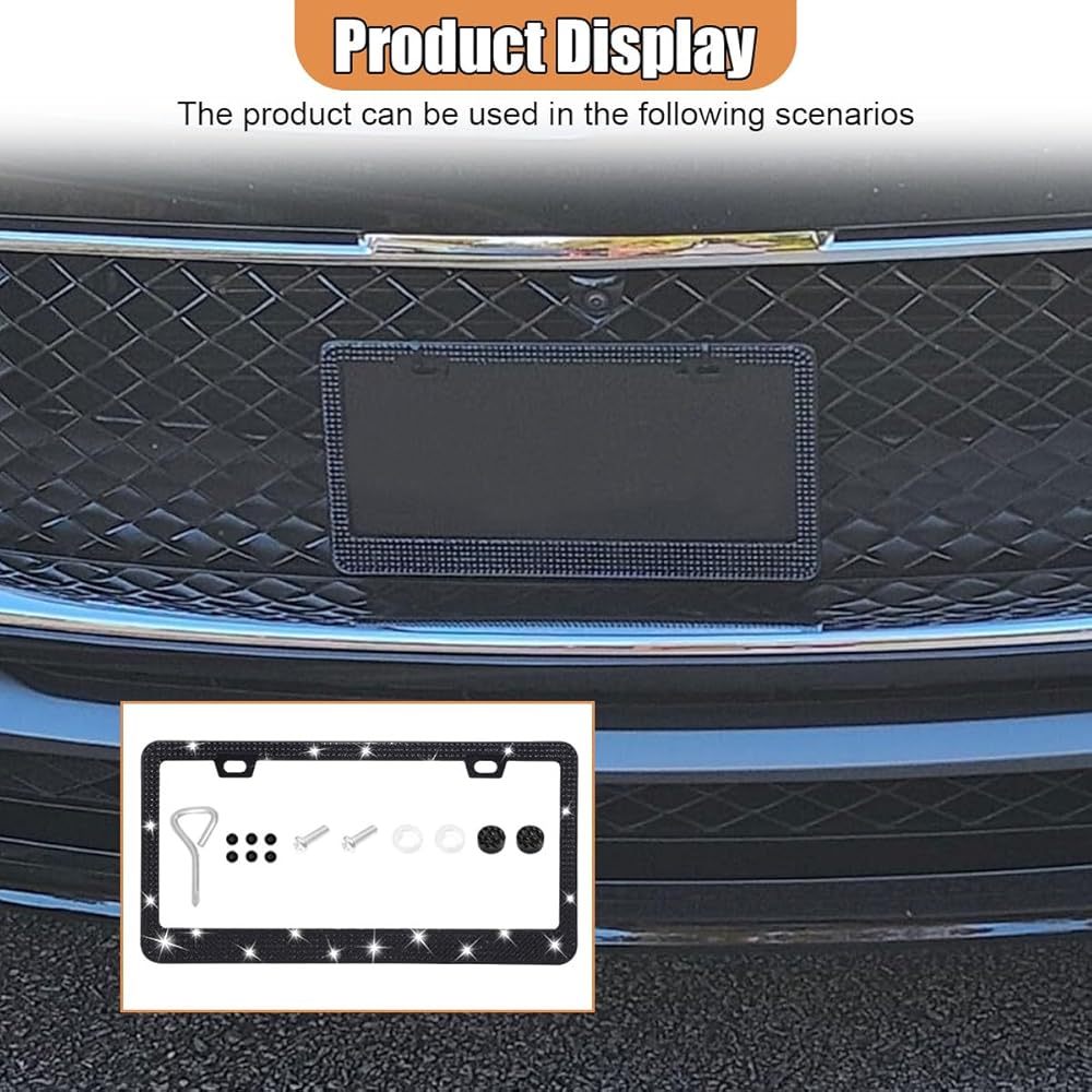 【Protection & Decoration】:This sparkly license plate holder is both beautiful and practical. Its appearance is embedded with rhinestones, which can be installed on your car to enhance its fashion and luxury, making your car shine from all angles. Moreover, it can provide comprehensive protection for your license plate, effectively preventing deformation and paint scratches.
