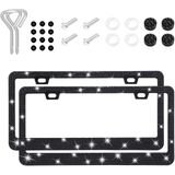 Bling Car License Plate Frame, Sparkly Rhinestone Auto License Plate Holder, Stainless Steel Crystal Automotive License Tag Cover, Universal Glitter Car Accessory for Women Men (Black, 1PC)