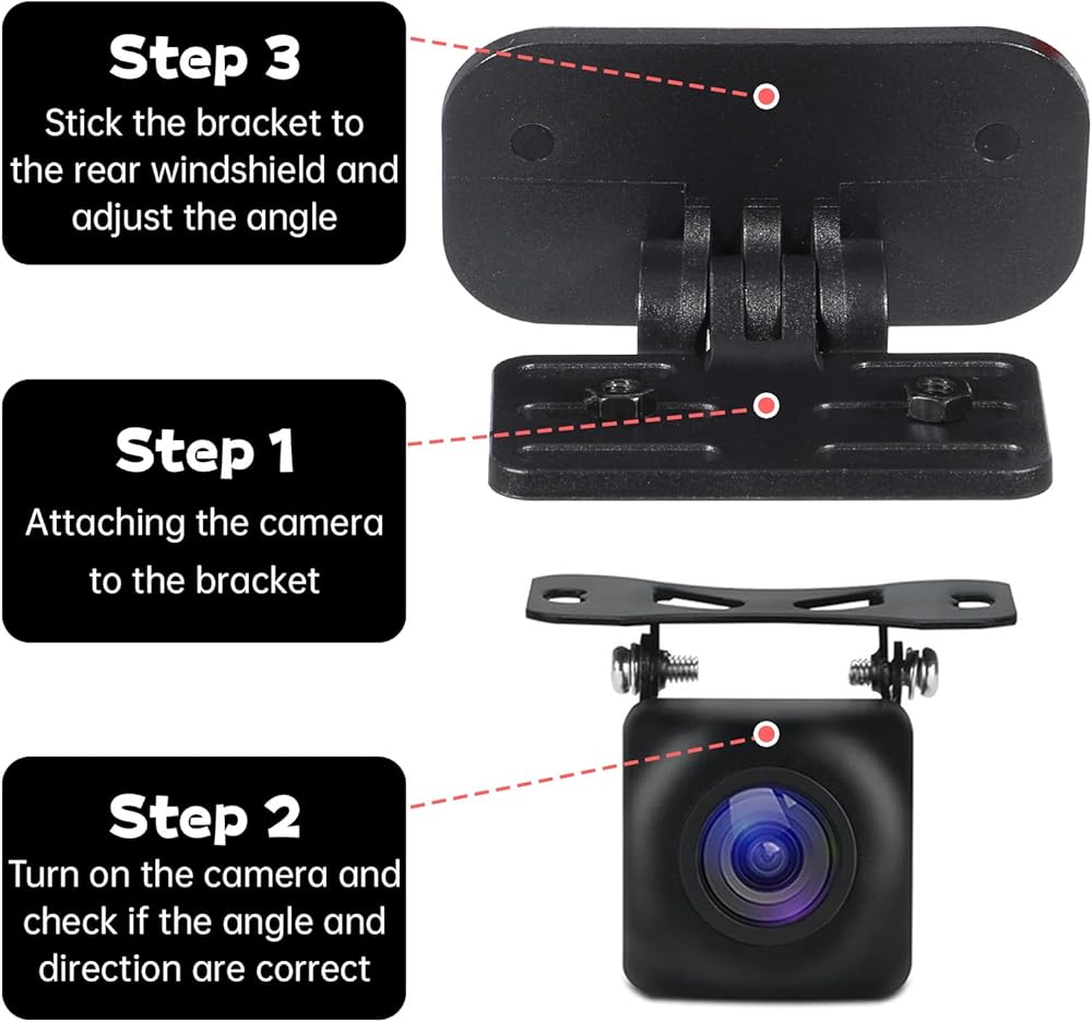 Easy Installation: Use the included tape to firmly stick the rear camera mount to the rear window, secure the windshield camera with 2 screws, and place it where it does not block the rear view. It is suitable for most vehicles