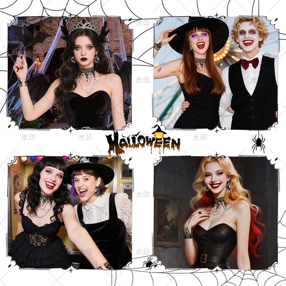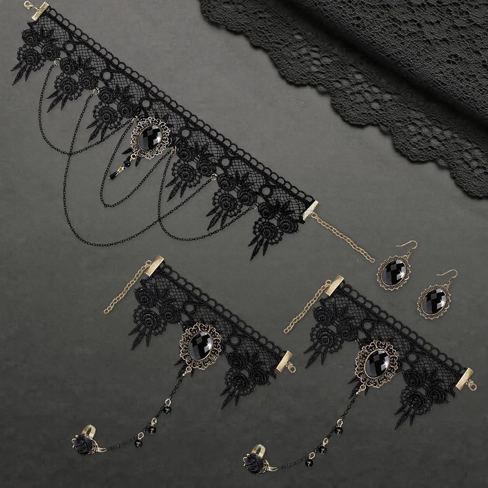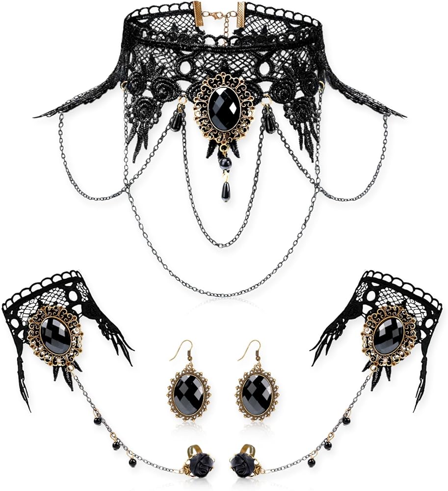 5 Piece Halloween Jewelry Set: Gothic jewelry set includes 1*Necklace, 2*bracelets with rings, 1 Pair *earrings perfect for vampire costume, witch costume, adding charm to Halloween looks