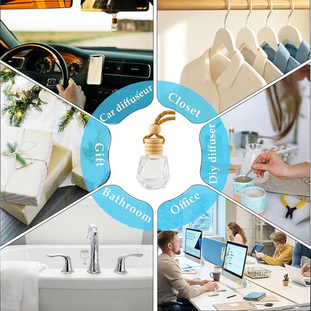 Note:If the scent becomes light over time, simply turn the bottle upside down briefly to let the oil soak into the wooden cap again. Perfect for car lovers, essential oil users, or anyone looking for a car diffuser hanging solution that's both stylish and functional.