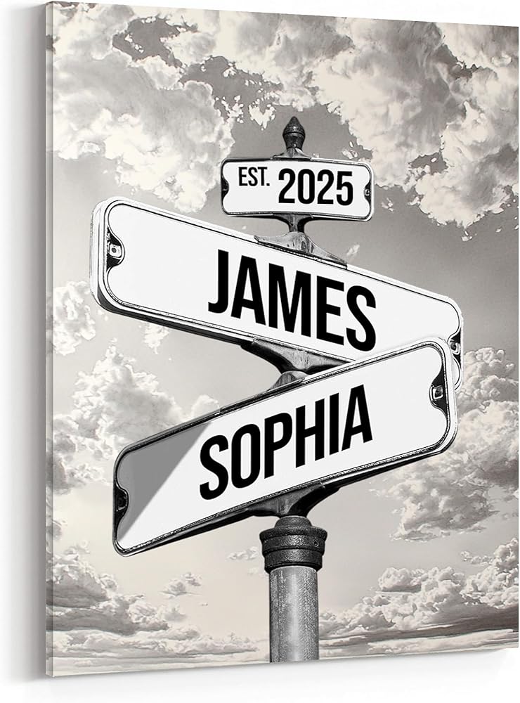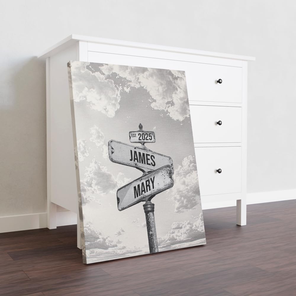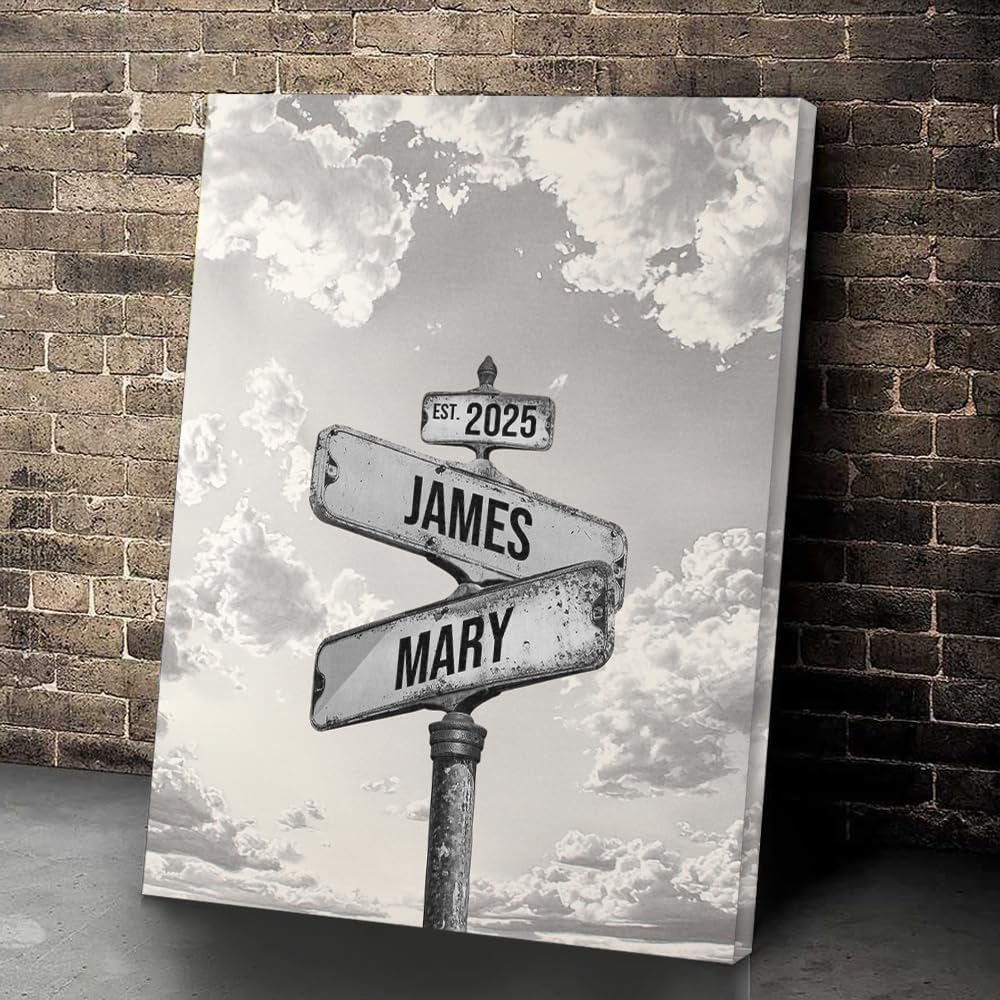 GABITA Personalized Crossroads Street Sign Wall Art for Couples, Anniversary Canvas for Couple, Gift for Valentines Day, Girlfriend Boyfriends Gifts, Custom Poster for Wife and Husband