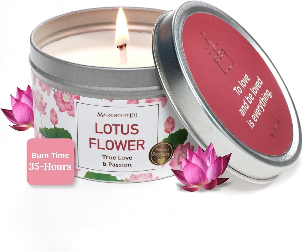 شمعة رائعة للعلاج برائحة زهرة اللوتس 101 - 6 أونصة - حرق لمدة 24 ساعة - شمعة من شمع الصويا من أجل الحب الحقيقي والعاطفة والتنقية والتجلي وشفاء الشاكرا - شمعة معطرة باللوتس