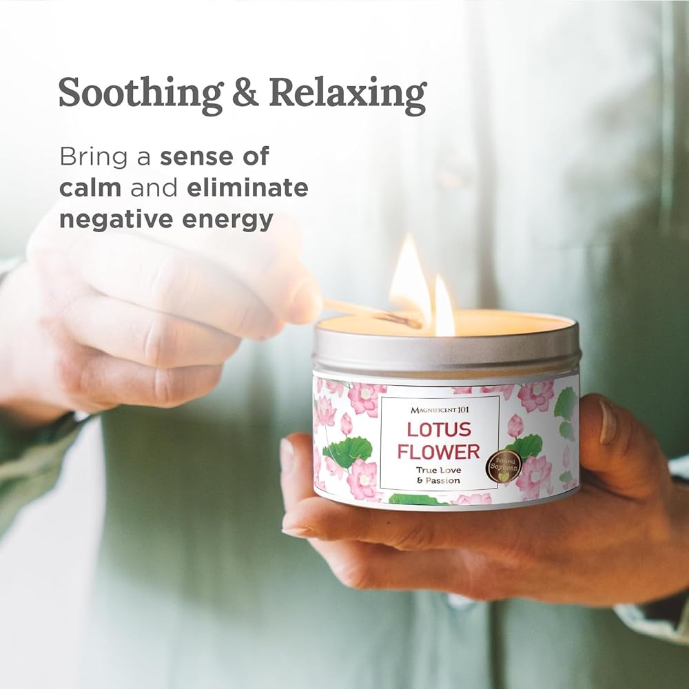 الوضوح والتركيز المتعمد: استخدم شمعة اللوتس لشحذ تركيزك وتعزيز الوضوح العقلي، ودعم رحلتك للنمو الشخصي والمهني. فهو يساعد على تنمية أنماط التفكير الإيجابية، ومواءمة نواياك مع أهدافك