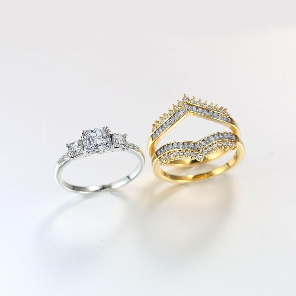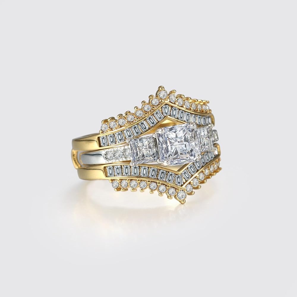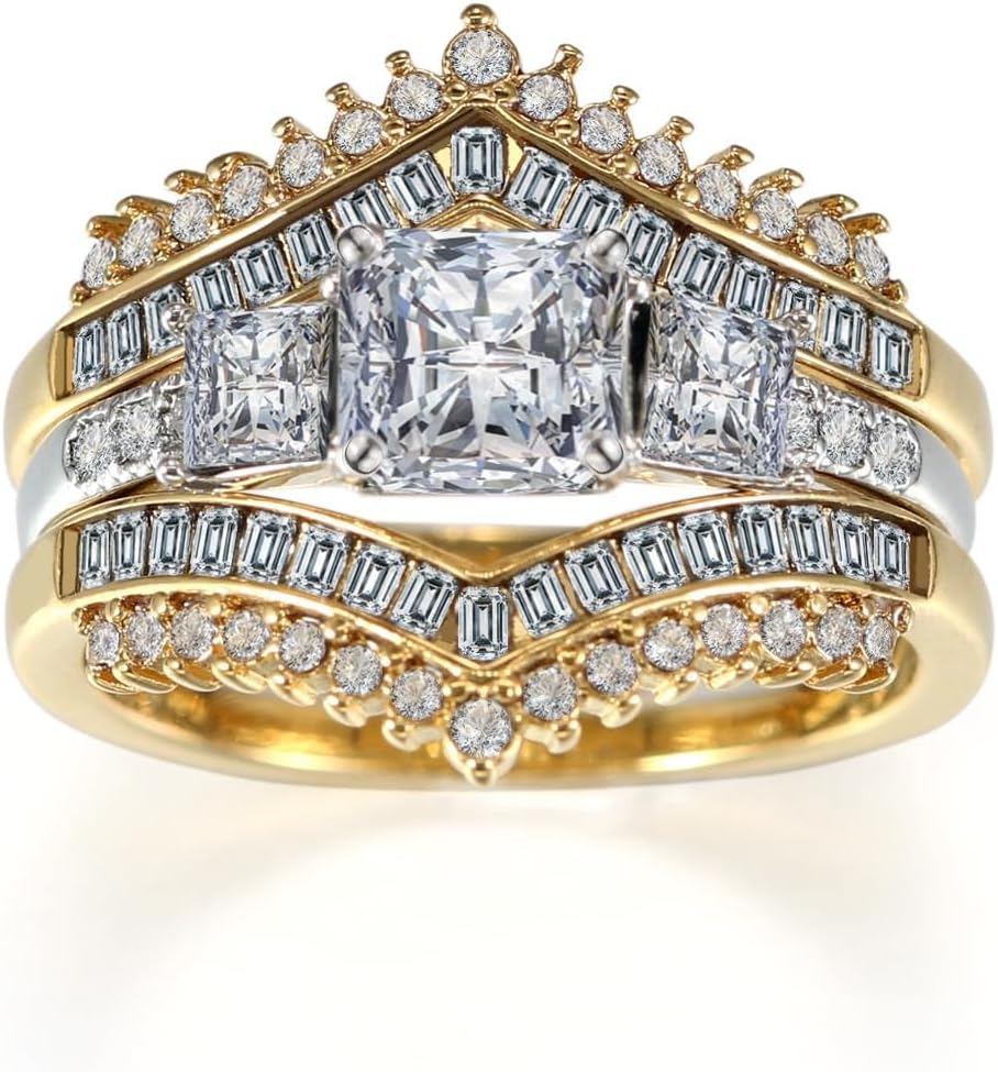 Romantic Bridal Ring Set for Women Crafted with 2CT high-quality cubic zirconia, this wedding ring set shines like a diamond at an affordable price. The yellow gold plated coating ensures long-lasting brilliance, making it ideal for Valentine's Day, proposals, or anniversaries.