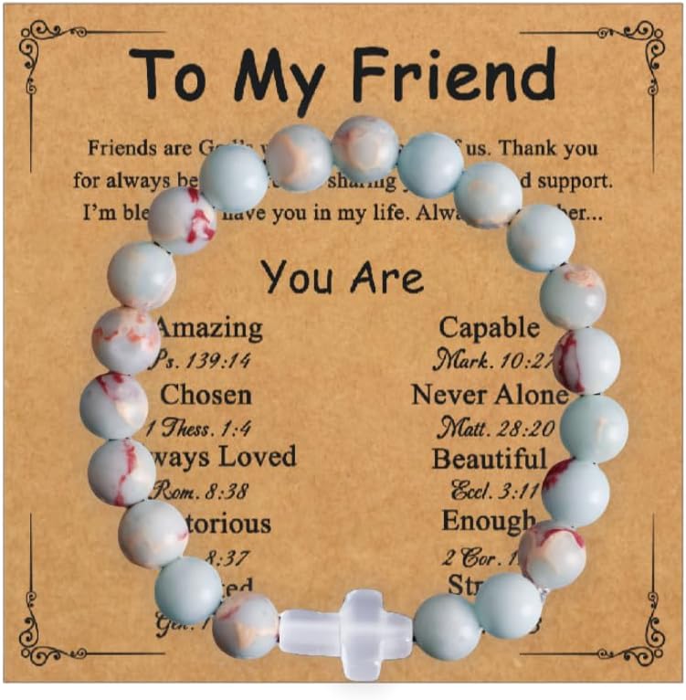 This women's cross bracelet is more than jewelry—it's your new favorite way to wear faith. Crafted with a stunning white cat's eye stone cross, it adds elegance to work, Sunday worship, or casual outings, while serving as a daily reminder of God's love, calm, and strength. It's the perfect gift for the special women in your life: mom, daughter, goddaughter, or friend. Ideal for Christmas, Easter, birthdays, baptisms, or any milestone—making every moment feel more meaningful. No worries about fit or comfort: soft natural stones and durable elastic keep it lightweight for all-day wear, with easy adjustability to fit most wrists (no fussy clasps!). The magic extends to the gift set: sleek gift box, message card, gift envelope, wax seal sticker, and pretty ribbon—ready to gift, no extra wrapping needed. It's a heartfelt way to say, “I see you, and your faith matters.” We've got your back too: our team responds fast to questions about the stone, fit, or more, so you can shop with confidence. This isn't just a bracelet—it's wearable faith, a story-telling gift, and a daily joy to cherish.
