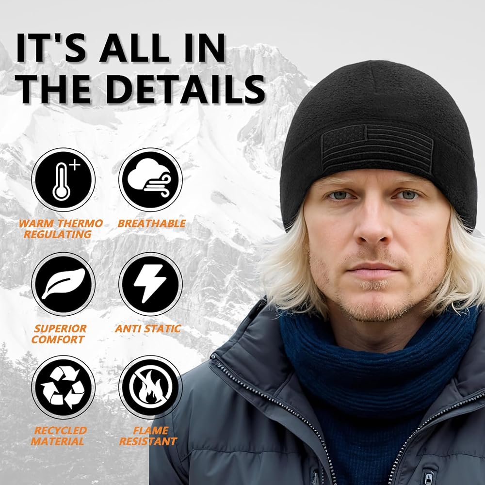 Practical for Outdoor Activities:Ideal for a wide range of outdoor pursuits. The warm fleece keeps your head protected from the cold, while the stylish design makes it a versatile accessory. Whether you're going for a run in the morning, skiing on the slopes, or working in the yard on a chilly day, this beanie is a reliable companion