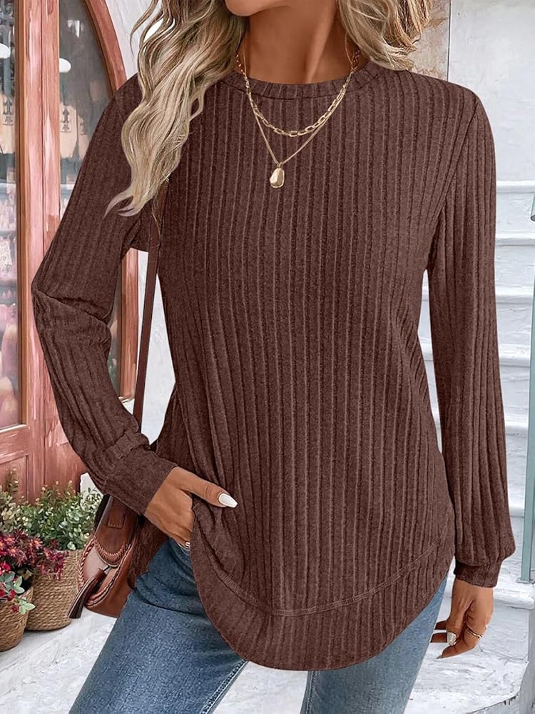 Fashion Design: This long sleeve shirts for women features Crew neck, basic solid color, loose fit, curved hemline, hip-hugging silhouette, subtly slims the waist and hips, Vertical stripe texture will make you looks taller and slim.