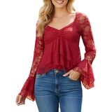 Unique Design: V-neck; Flare sleeve; Lace edge; Double layered lotus leaf edge; Fairy ruched shirt for women with loose and elegant style makes you comfortable and beautiful