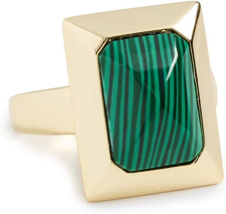ADINA EDEN Women's Colored Baguette Stone Rectangle Ring, Malachite, Green, Gold, 7