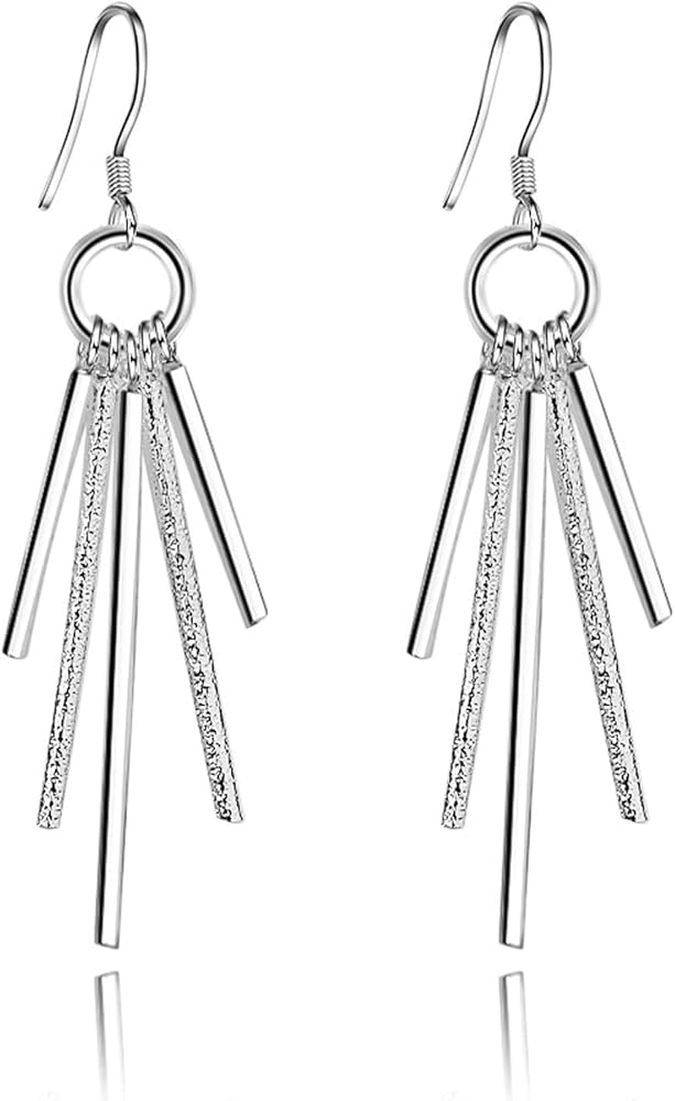 【Hand Made】The Lightweight bar dangle earrings are made of real 925 sterling silver,so that the cuff is malleable,very flexible and bendable,easily adjust to fit your ears.