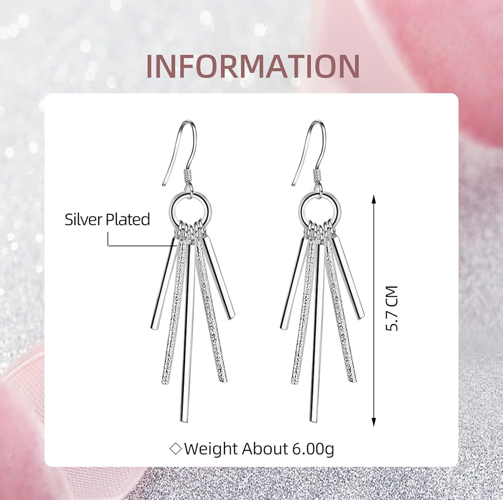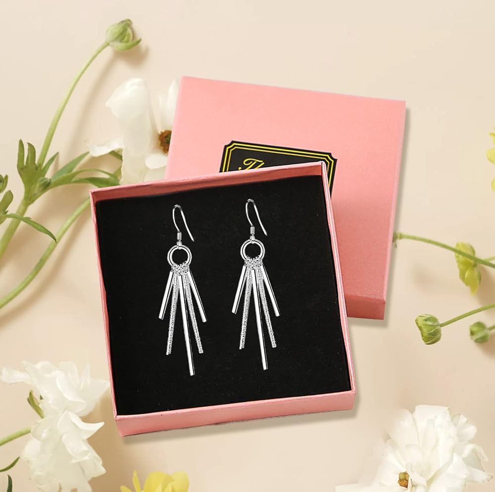 【Fashion Design】Stunning threader long chain design of these sterling silver earrings will add classic sophistication to your look and will complement your casual or formal outfit.Great with your daily outfits like vest,T-shirt,bikinis,boho beach dress.