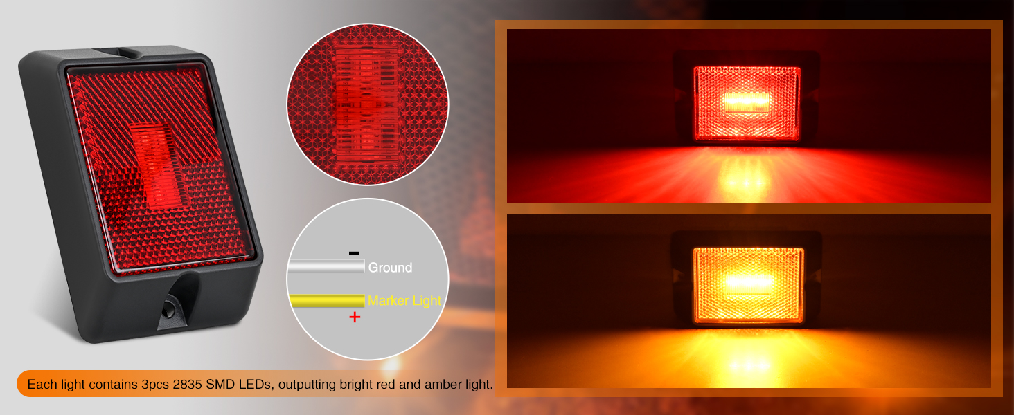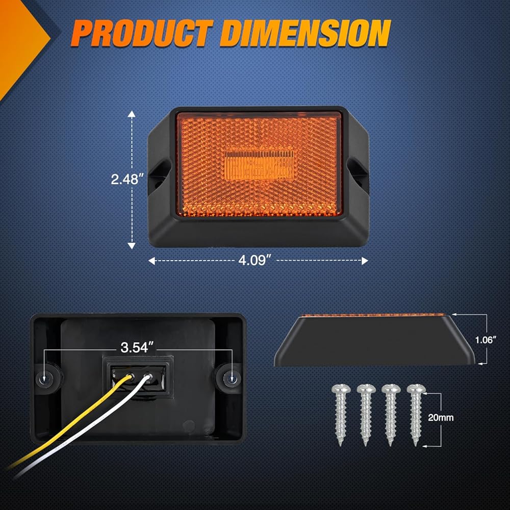 Package Includes: 2pcs red and 2pcs amber side marker light, each light comes with 2pcs self tapping screws