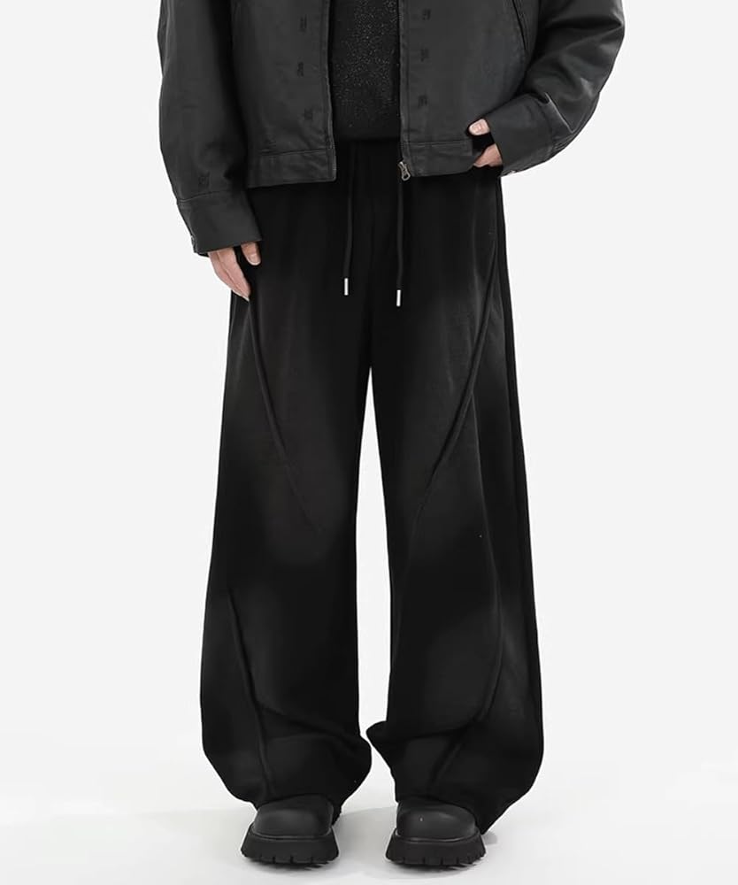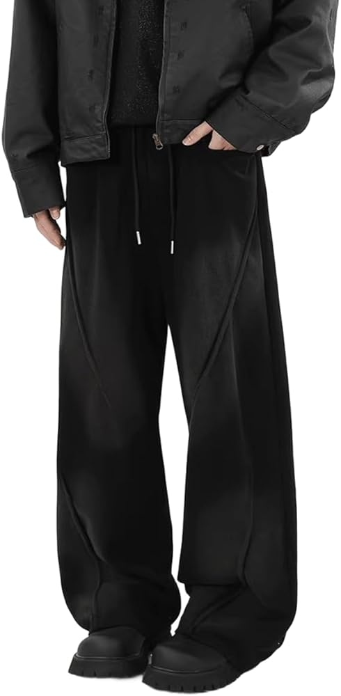 Drawstring elastic Sweatpants for men teen boys ,the adjustable drawstring waistband with elastic provides a customizable fit, while the wide-leg design offers unrestricted movement