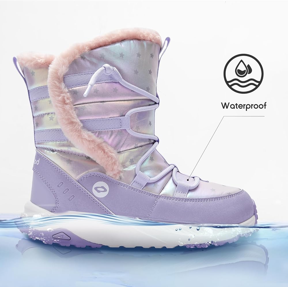 ULTRA-PLUSH FLEECE LINING – 360° thick, silky long-pile fleece cocoons little feet in cloud-soft warmth, trapping heat while wicking moisture so socks stay dry and toasty from frosty bus stops to snowball battles; the hypoallergenic finish prevents itch, making these snow boots for kids and rain boots kids can wear comfortably in sub-zero temps or sudden sleet storms.