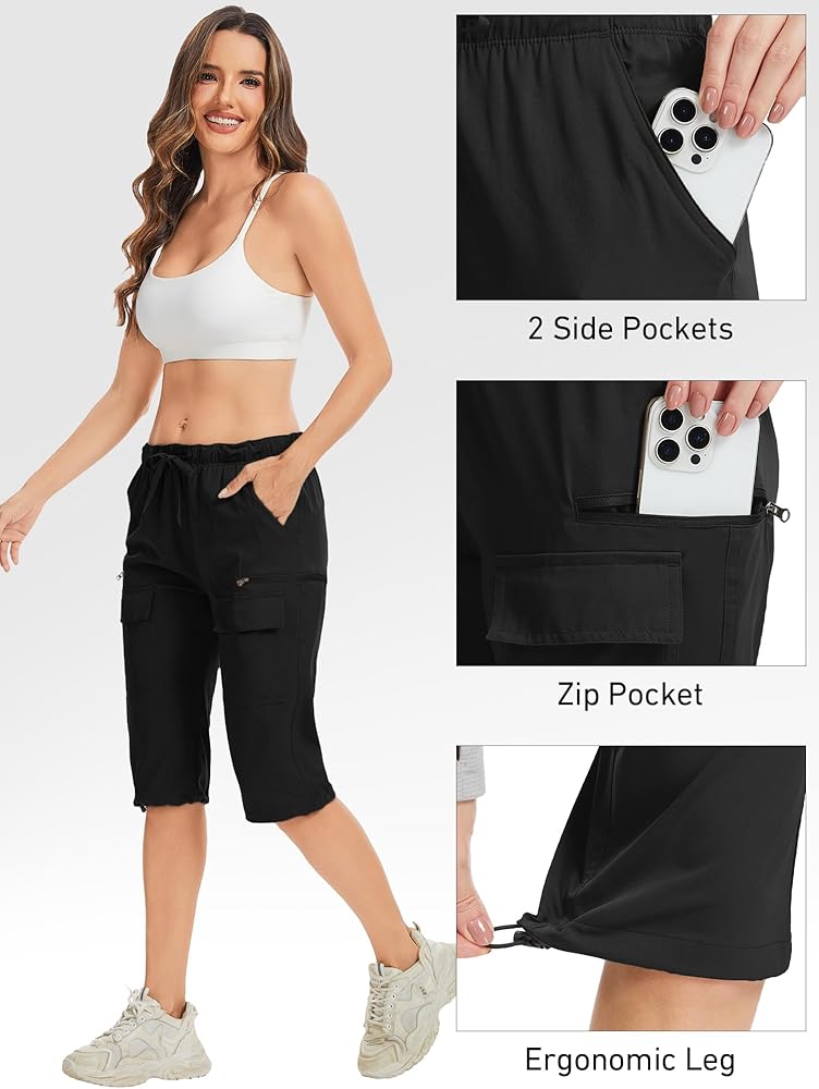 Capri pants for women:Lightweight & Quick-Drying,Moisture wicking, breathable fabric dries sweat quickly to keep you dry and comfortable during your outdoor actives. UPF 50+ protects your skin from the harmful rays of the sun.