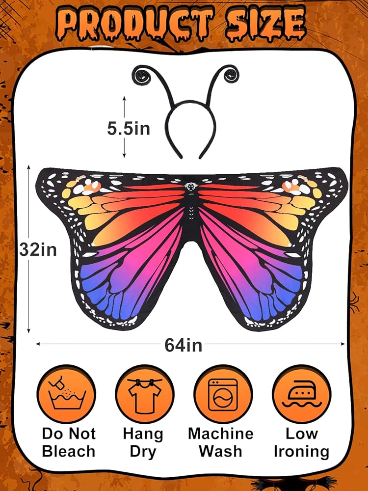 Lightweight and Comfortable Fit: The adult monarch butterfly cape wings are made from soft, wrinkle-resistant polyester with elastic shoulder straps, suitable for most adult women. The men's butterfly catcher costume is a relaxed fit and easy to wear