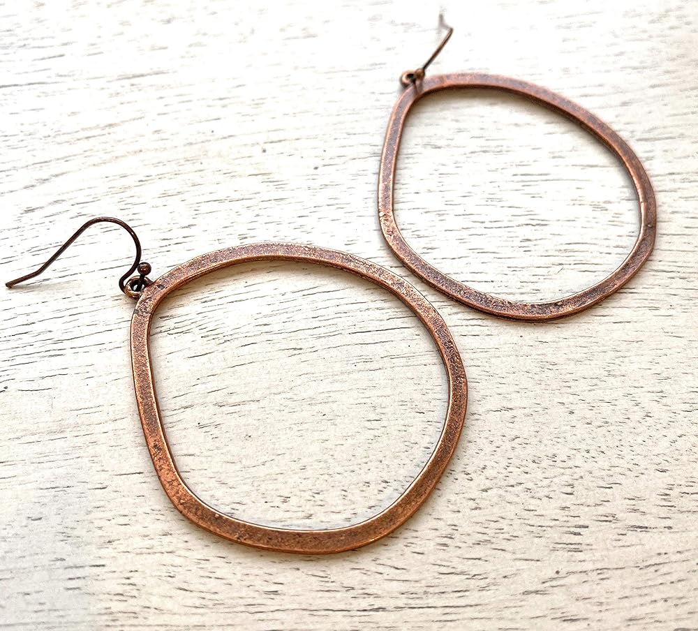 Copper hoop measures 2.5". All of my items are handmade, arrive in a gift box and are packaged with care.
