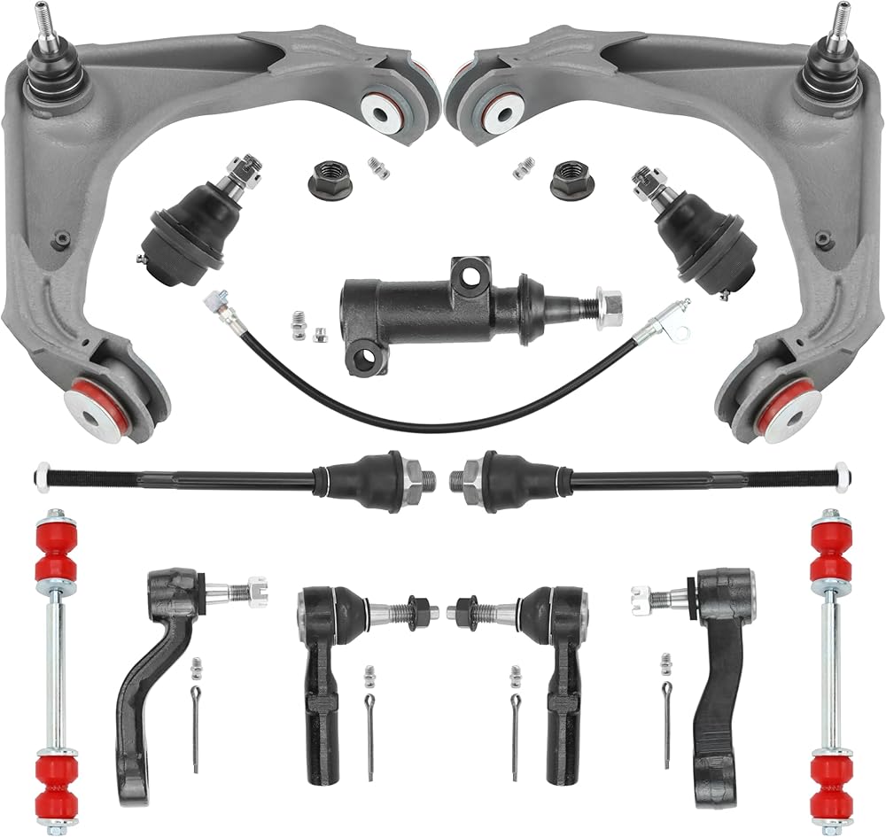 Products Include: 2x Front Upper Control Arms w/Ball Joints Assembly - Driver & Passenger Side - K622128, 2x Front Lower Ball Joints - Driver & Passenger Side - K500232, 2x Front Sway Bar End Links - Driver & Passenger Side - K80631, 2x Front Outer Tie Rod Ends - Driver & Passenger Side - ES800901, 2x Front Inner Tie Rod Ends - Driver & Passenger Side - EV800935, 1x Idler Arm Assembly - K400018.