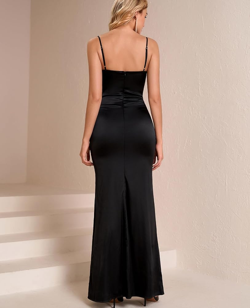 Satin dress, wedding guest dress, backless dress, satin dress for women, cocktail dress, black dresses for women formal, elegant dresses for women, maxi dress for women, homecoming dresses, satin maxi dress, evening dresses for women