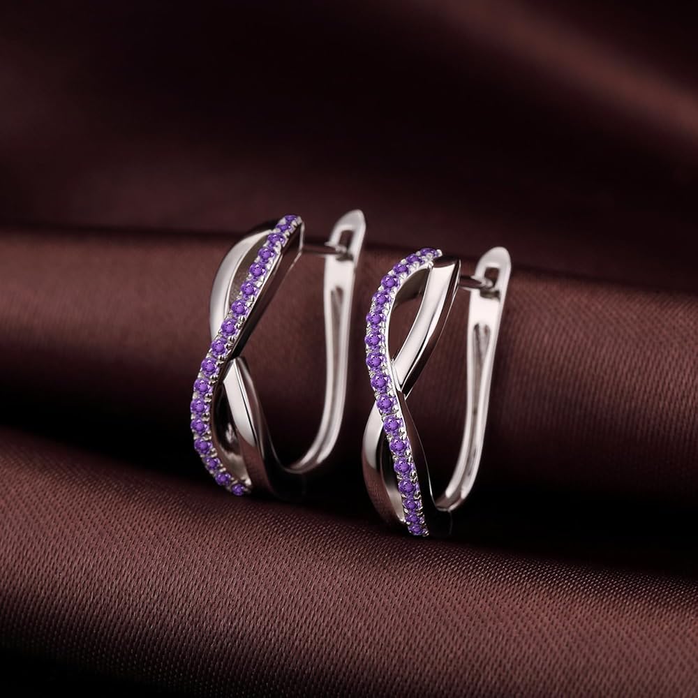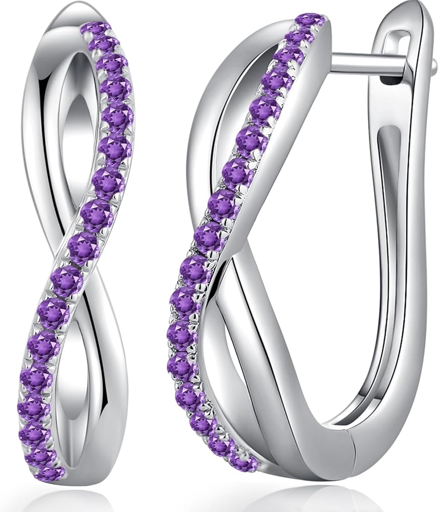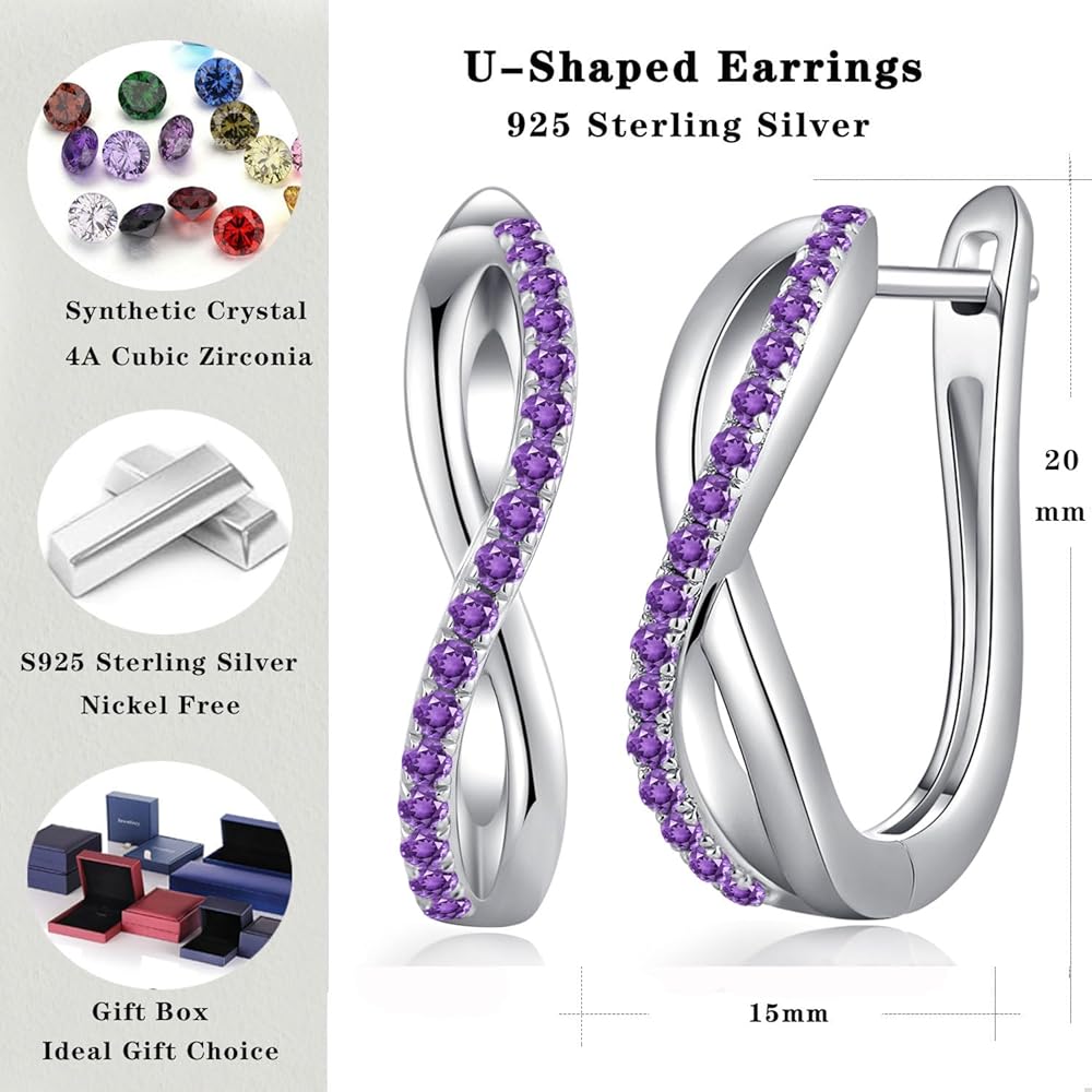 💎. 【Fantasy Design】Classic Style U Shaped Hoop Earrings 925 Sterling Silver Birthstone Earrings Hoops Size 15mm*20mm.With Rhodium Plated, High Quality Materials and Perfect Workmanship - 10 Years of Refined Foruiston Craftsmanship-Worthy of Your Trust.
