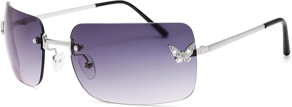 2000s Fashion: Stylish and trendy, these rimless rectangular Y2k sunglasses bring back the classic 2000s look for both men and women.