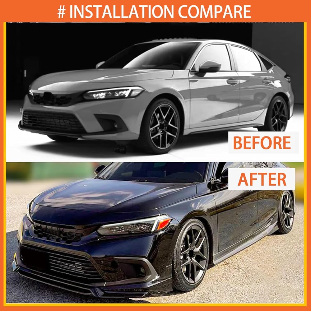 Front Lip Compatibility with 2022-2024 Civic Yofer Style Front Bumper Chin Lip Splitter Spoiler Kit Black