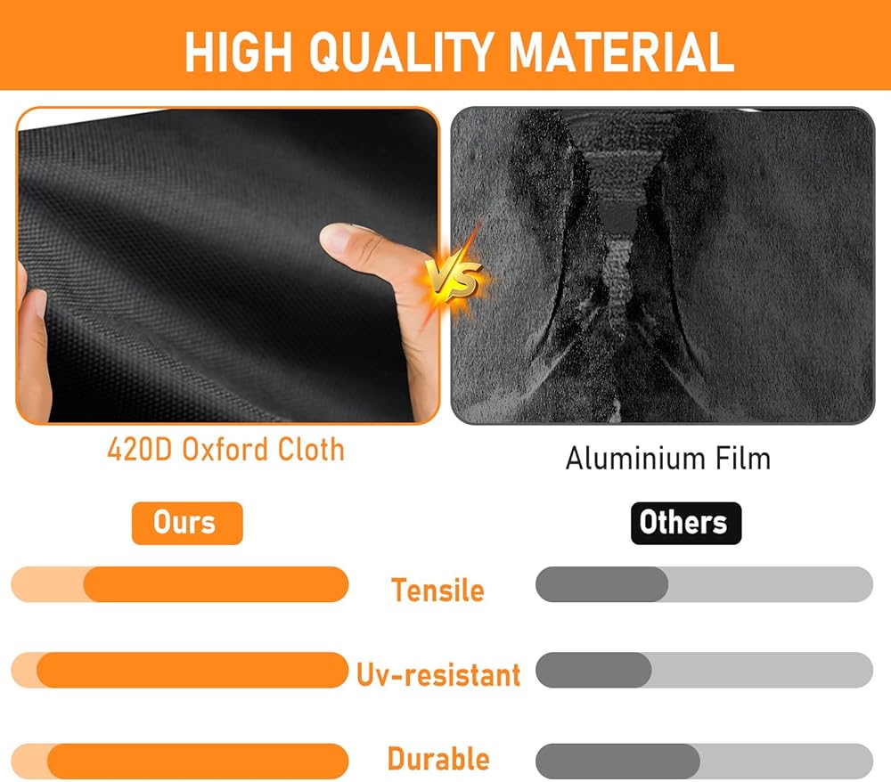 • Upgraded material: The waterproof car cover is made of 420D Oxford cloth PU. It is wear-resistant, scratch-resistant, tear-resistant and UV-resistant, which can effectively protect the vehicle from UV damage and also protect the paint from damage. The inner fabric adopts double waterproof coating and waterproof strips are attached to the seams to ensure that there will be no leakage or seepage. It can effectively prevent rain from penetrating into the interior of the vehicle