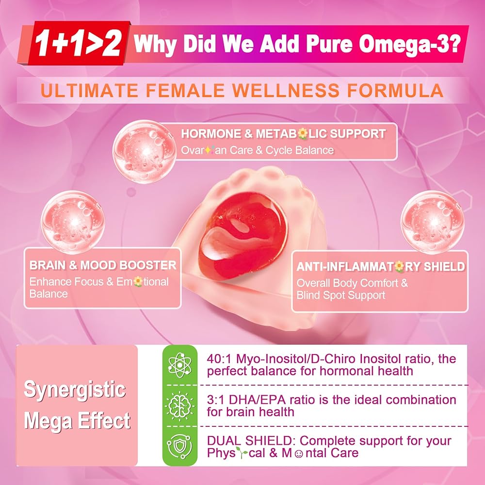 【Restore Your Hormonal Rhythm Naturally】 Struggling with hormonal fluctuations, irregular cycles, or PMS m☺od swings? Our Inositol + Omega-3 Gummies combine 2000 mg Myo-Inositol and 50 mg D-Chiro-Inositol in the clinically recommended 40:1 ratio to help balance your hormones. This synergistic duo of inositols plus Omega-3 supports ovar✨an function, cycle regularity, and overall hormonal wellness — ideal for women managing hormonal imbalances, PC🌸S, or seeking greater monthly stability.