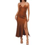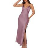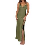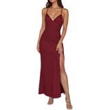 DESIGN: Spaghetti strap dress is features a deep V-neckline that elongates your silhouette and a sexy open back tied with delicate s traps. The thigh-high slit adds a touch of allure while allowing freedom of movement. Wedding guest dress's adjustable spaghetti straps ensure a secure, you can tighten the back as needed.