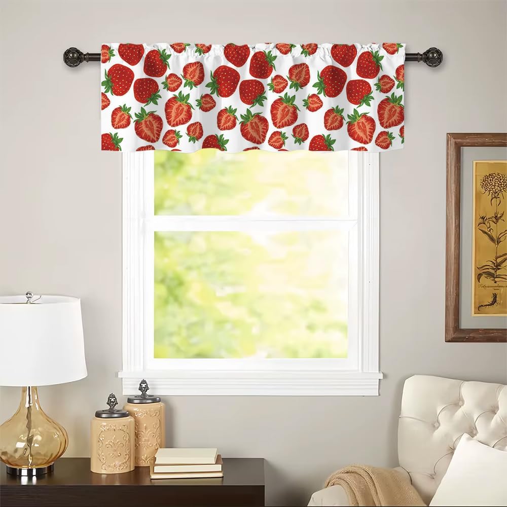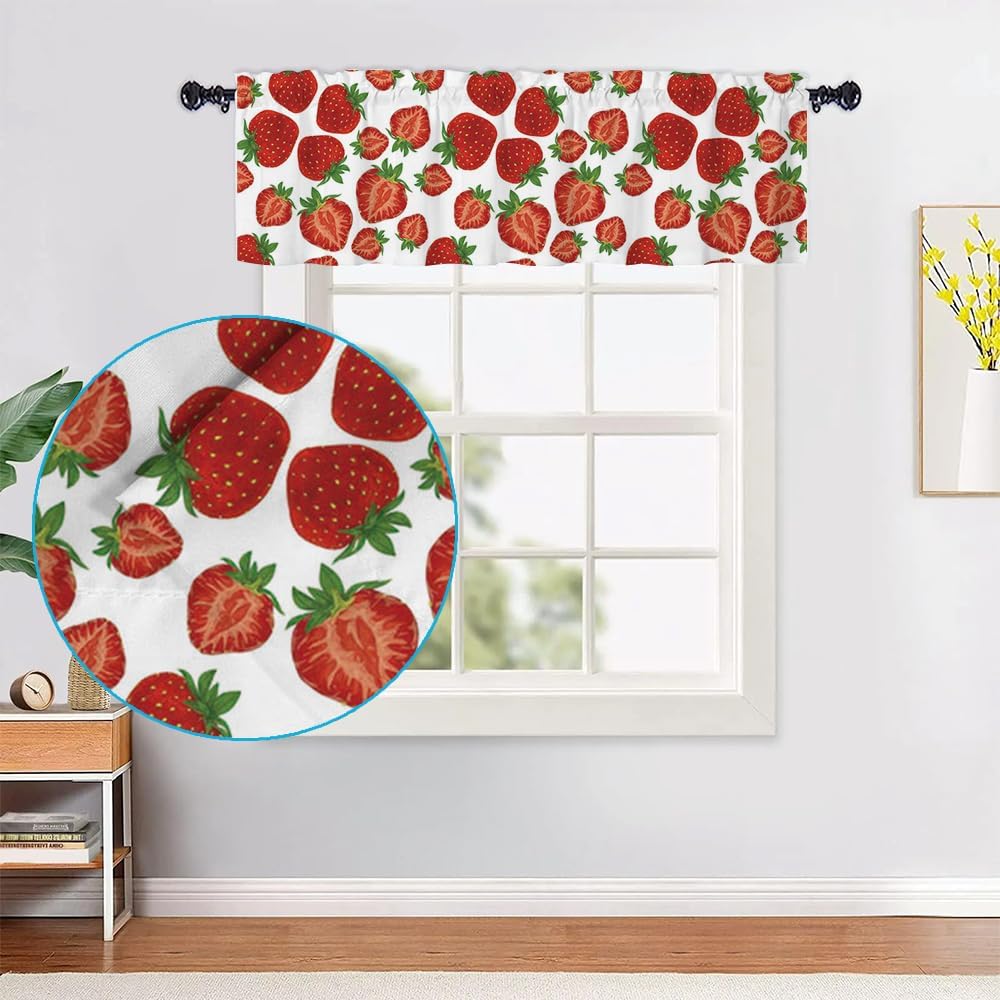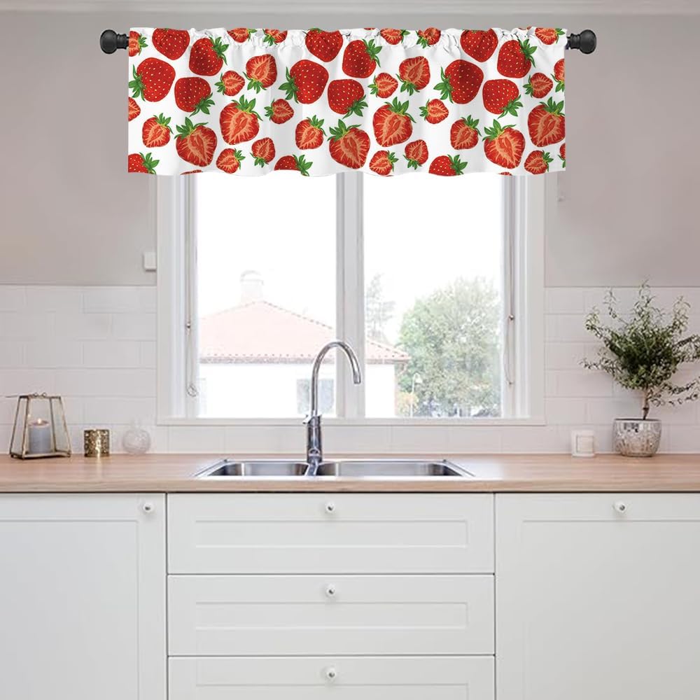Size: The strawberry window treatment valance size is 54*18 inch (138*45cm) with rod pocket wich can be easily install and slide on standard or decorative curtain rods.