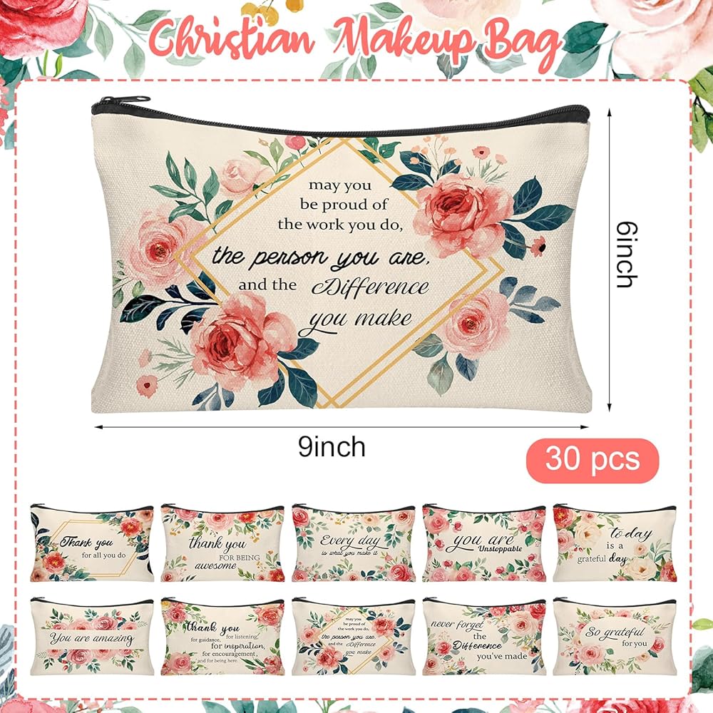 Package Includes:Our christian gifts for women contains 30 bible cosmetic bags, covering 10 unique styles, each style contains 3, a rich combination of styles to meet a variety of aesthetics, enough quantity for various usage scenarios, whether for personal use or bulk gifts are very suitable!