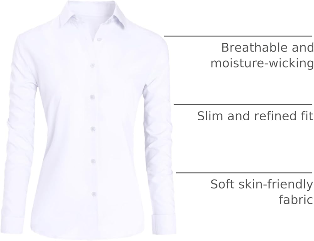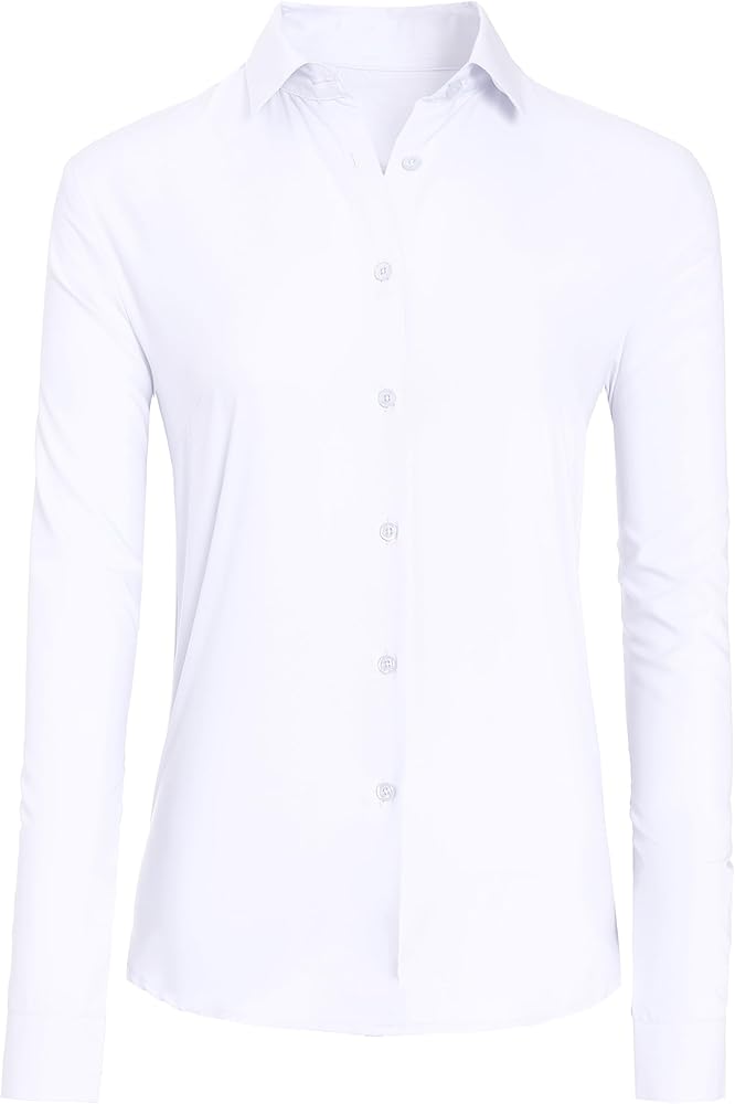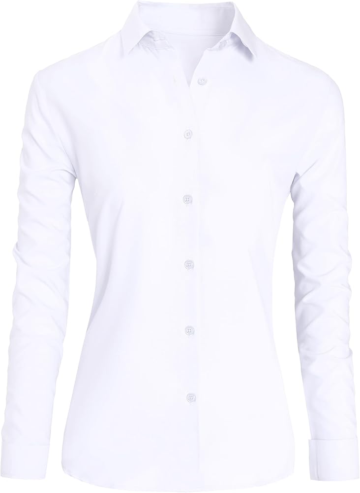 CBOO Button Down Shirts For Women, Wrinkle Free Business Casual Blouses Long Sleeve Simple Shirt
