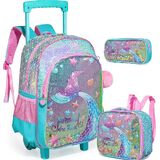 Rolling Backpack For Girls 8-12 Size:backpack:16.5*11.8*7.8in/pencil case:9in/lunch box:9*8.2in