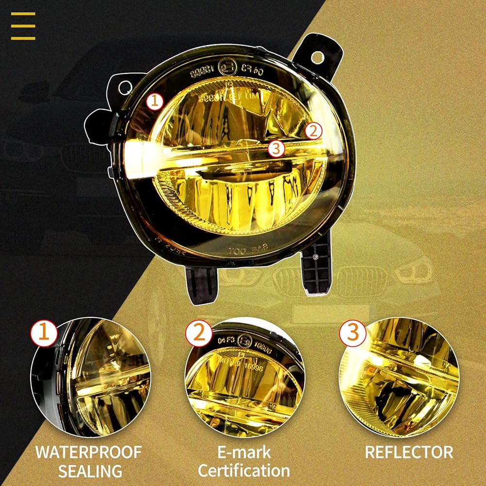 【 DURABLE BMW FOG LIGHTS 】— Increases driving safety and height visibility at night, heavy rain, snow or dense fog. Made to withstand the prevent moisture and dust from getting inside the housing.