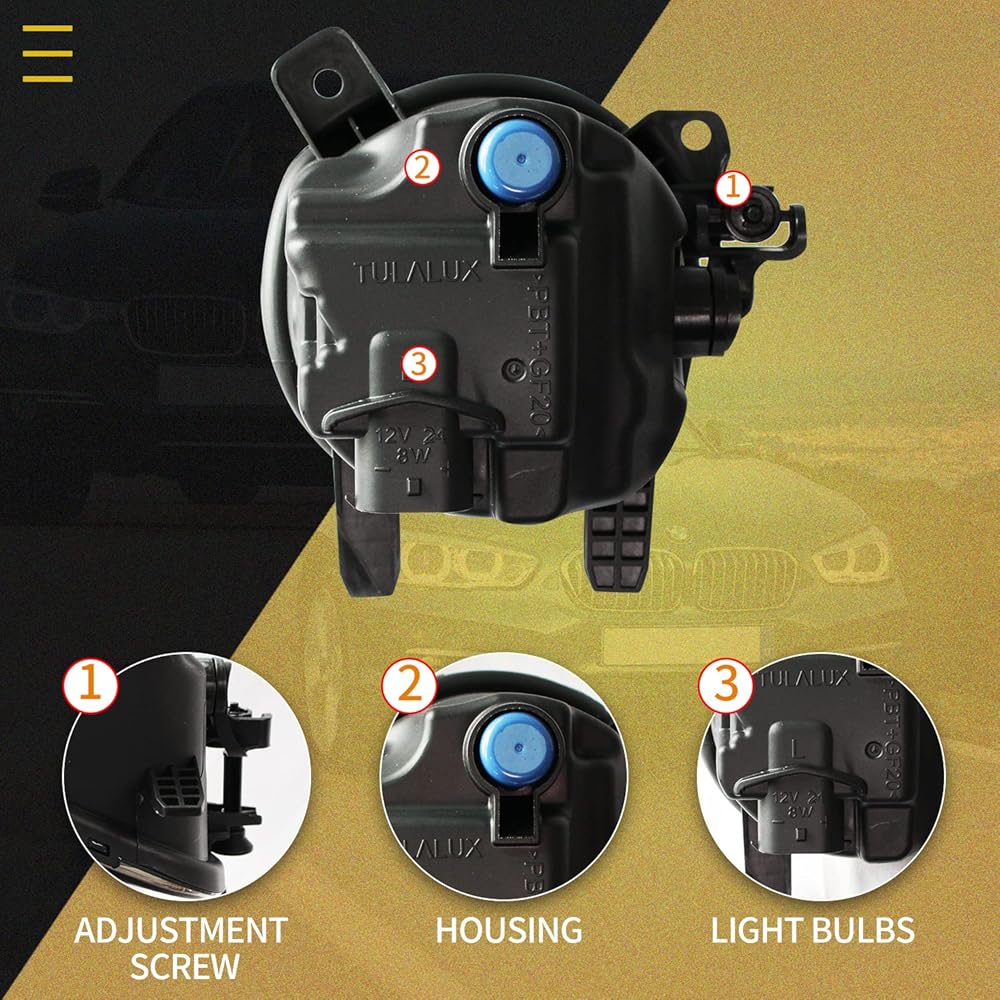 【 DOT / SAE COMPLIANCE 】— Replaces OEM Equivalent Part Number: Left-63177315559, Right-63177315560; ABPA Partslink Number: Left-BM2592153, Right-BM2593123; These Fog Lights not only improve the appearance of your car, but also conform the strict guidelines of DOT and SAE compliant.